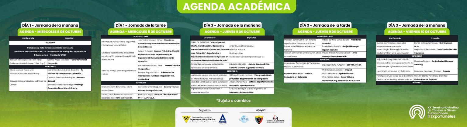 El XX Seminario de Túneles y Obras Subterráneas y II Expotúneles es un espacio que busca reunir en un solo lugar a profesionales en túneles, minería y construcción subterránea, los días 8, 9 y 10 de octubre en Fórum UPB – Medellín